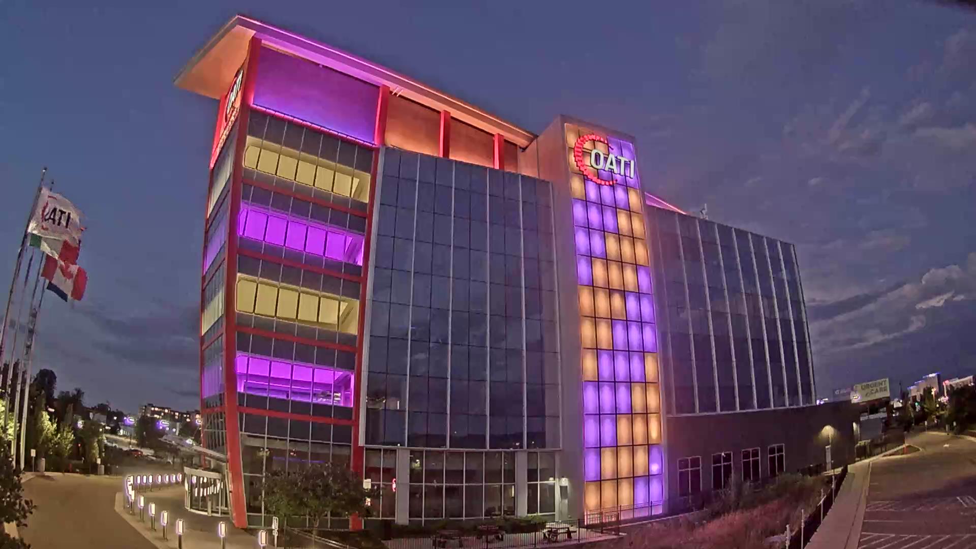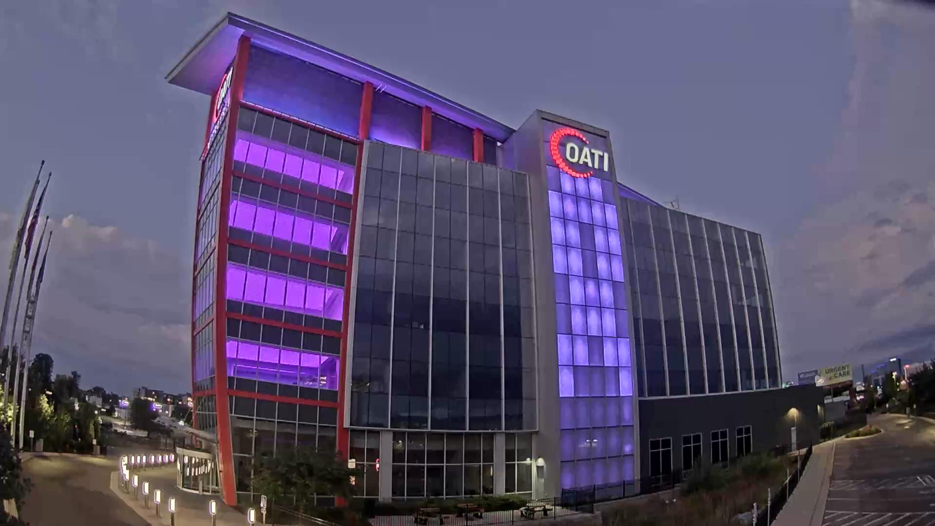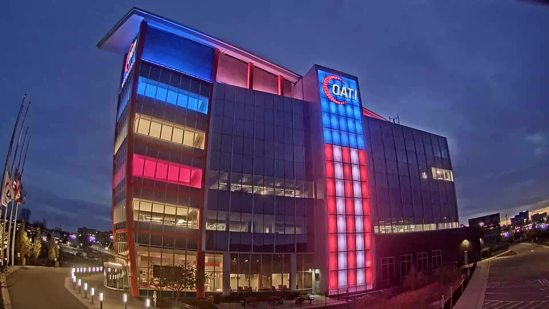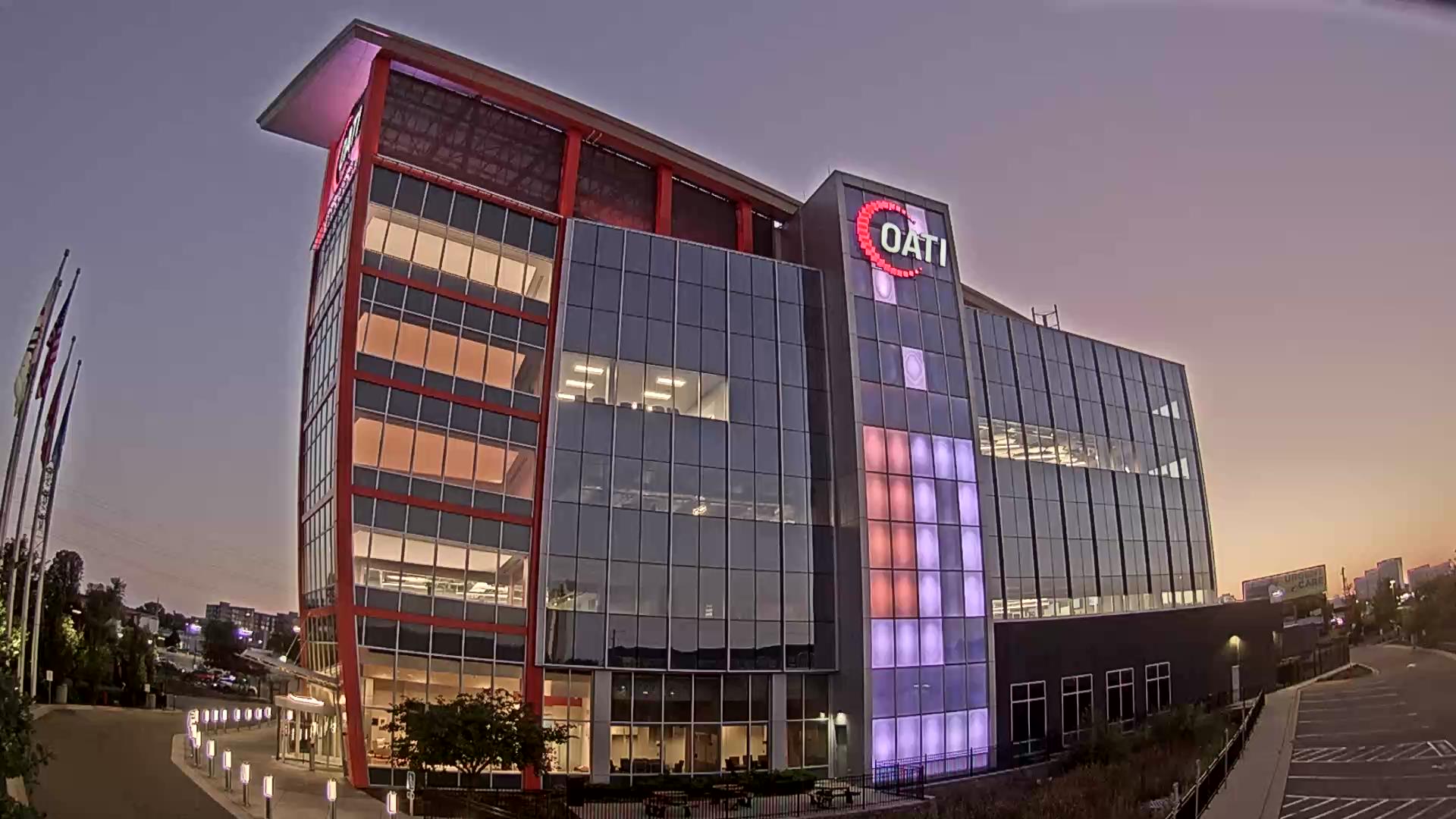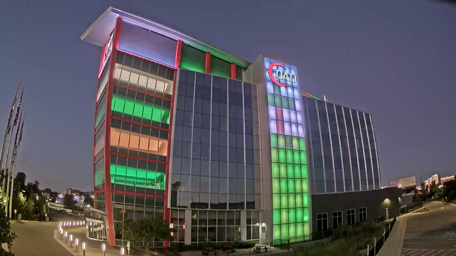 From the American flag to a glowing game of Tetris, the OATI Microgrid Technology Center illuminates a variety of unique light displays to about 172,000 commuters every day. Located in Bloomington, MN, this building is powered by several renewable energy resources, and consists of four office floors, a wraparound roof, and an over 100-foot-tall LED wall.