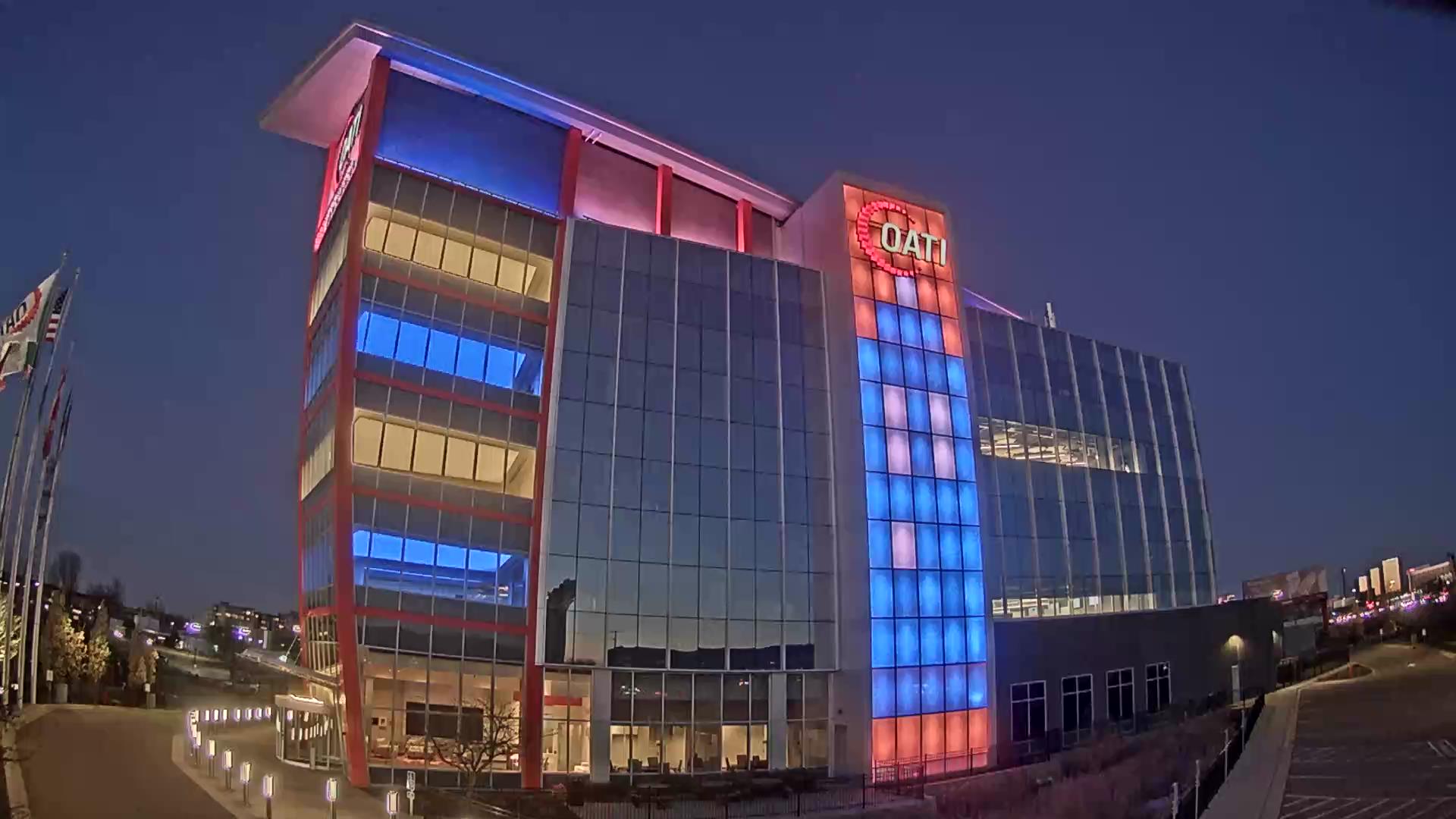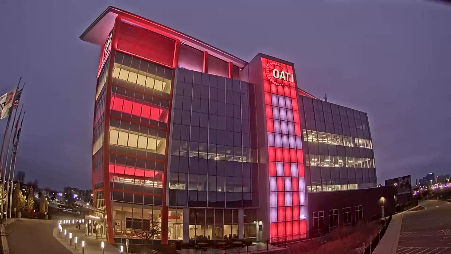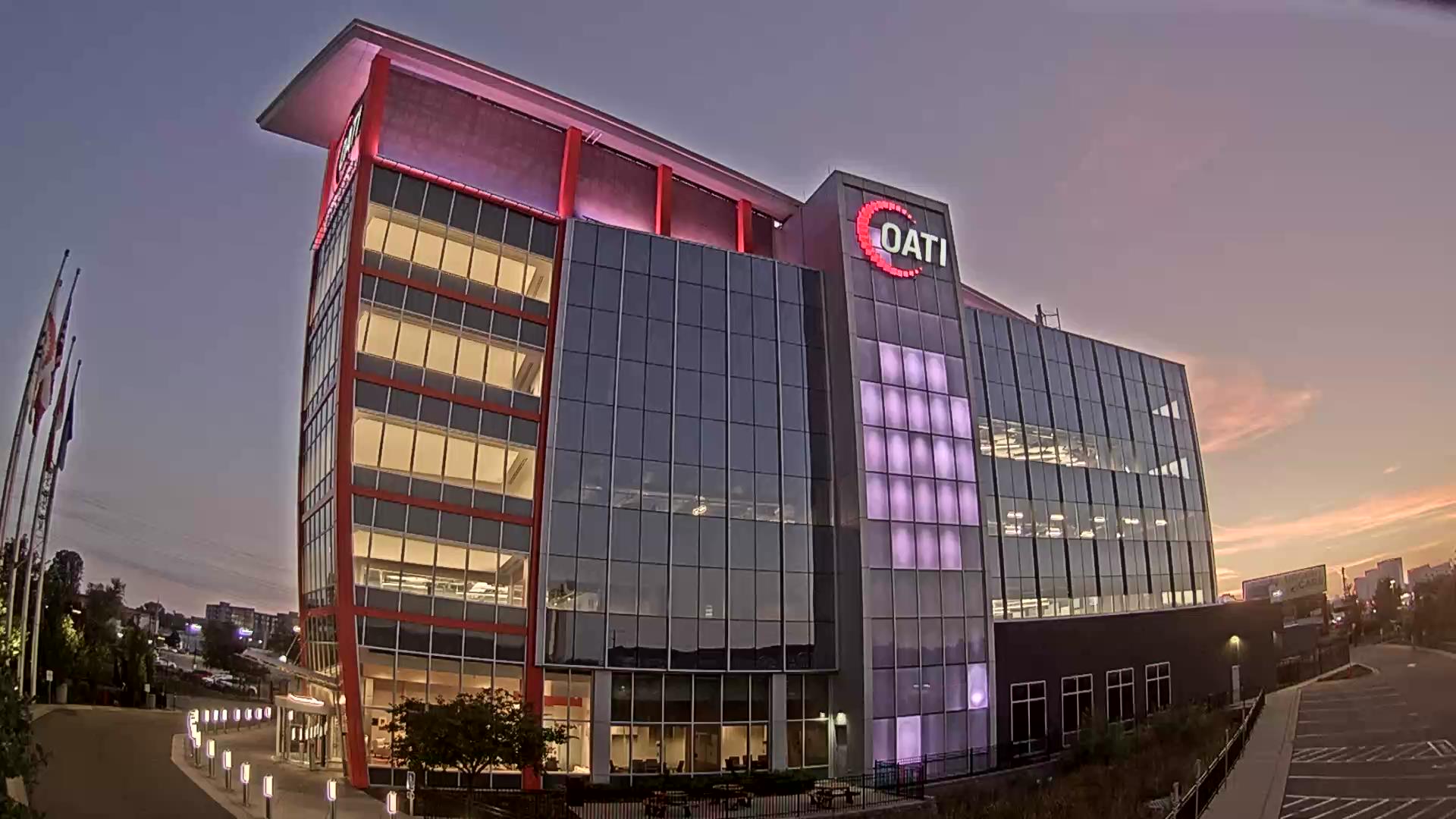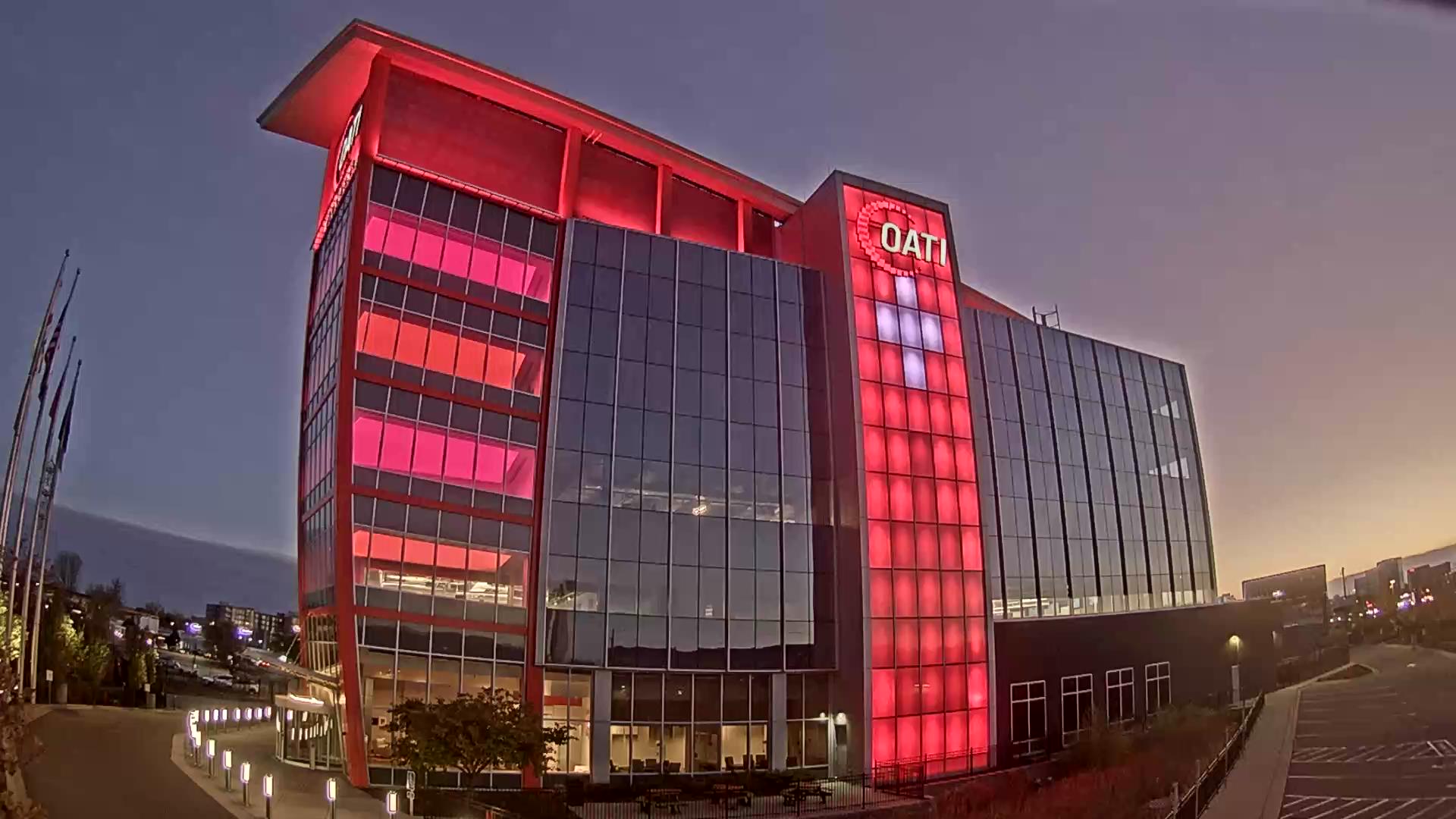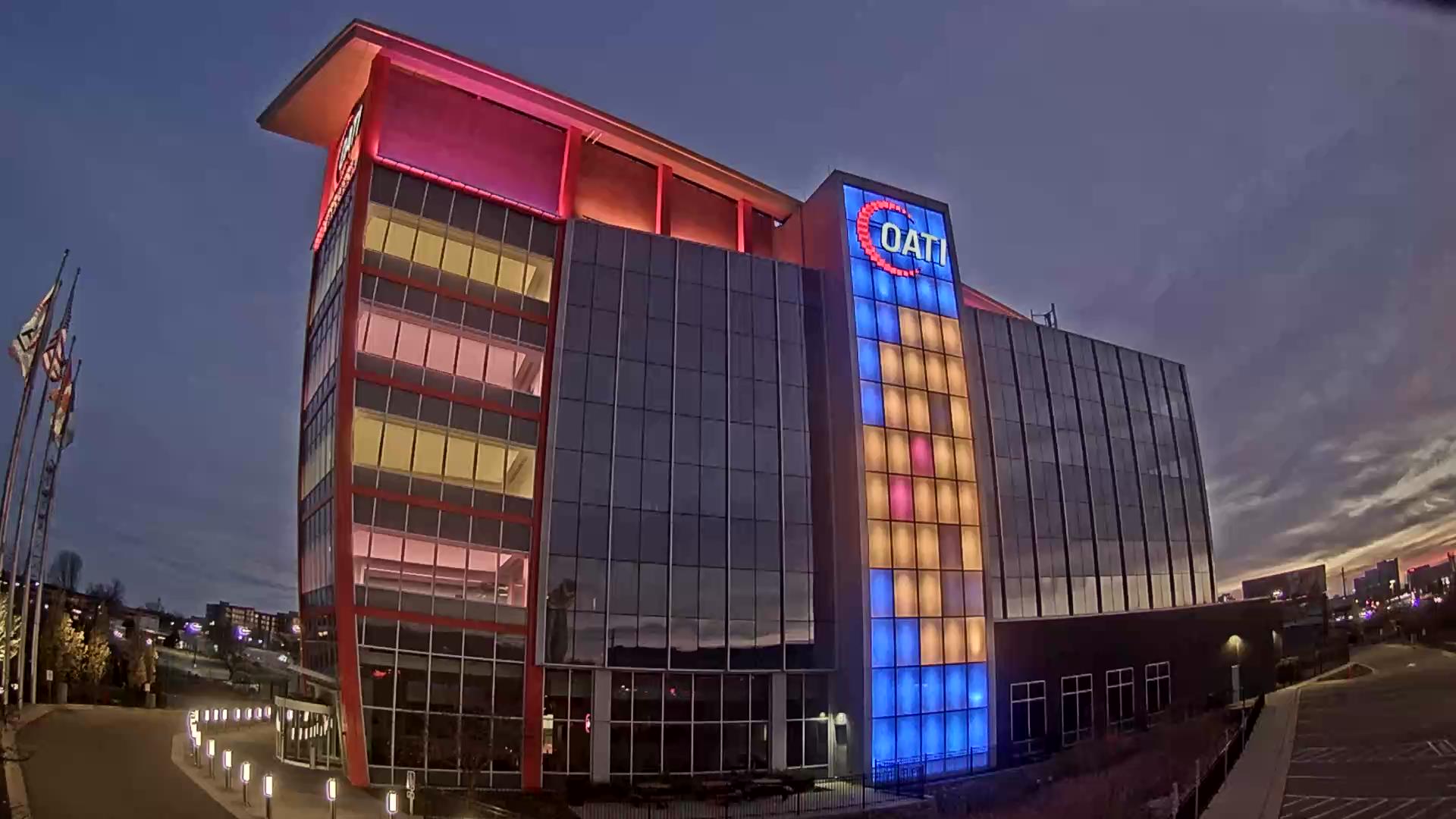 From the American flag to a glowing game of Tetris, the OATI Microgrid Technology Center illuminates a variety of unique light displays to about 172,000 commuters every day. Located in Bloomington, MN, this building is powered by several renewable energy resources, and consists of four office floors, a wraparound roof, and an over 100-foot-tall LED wall.