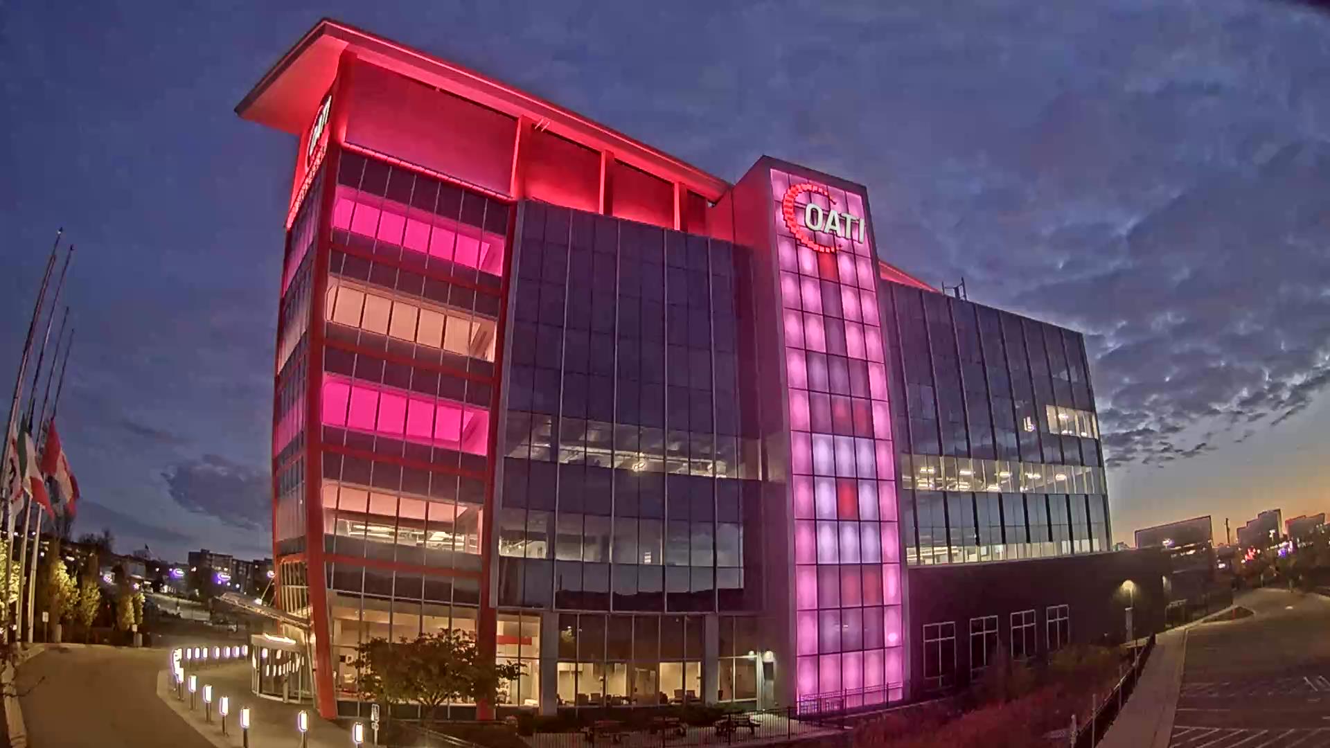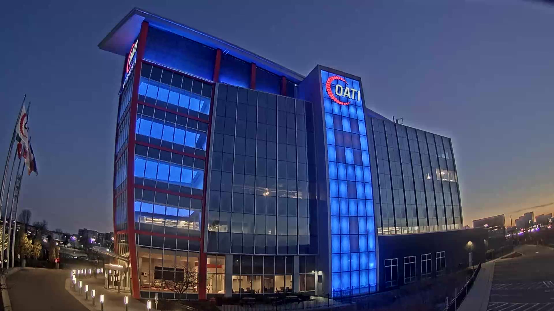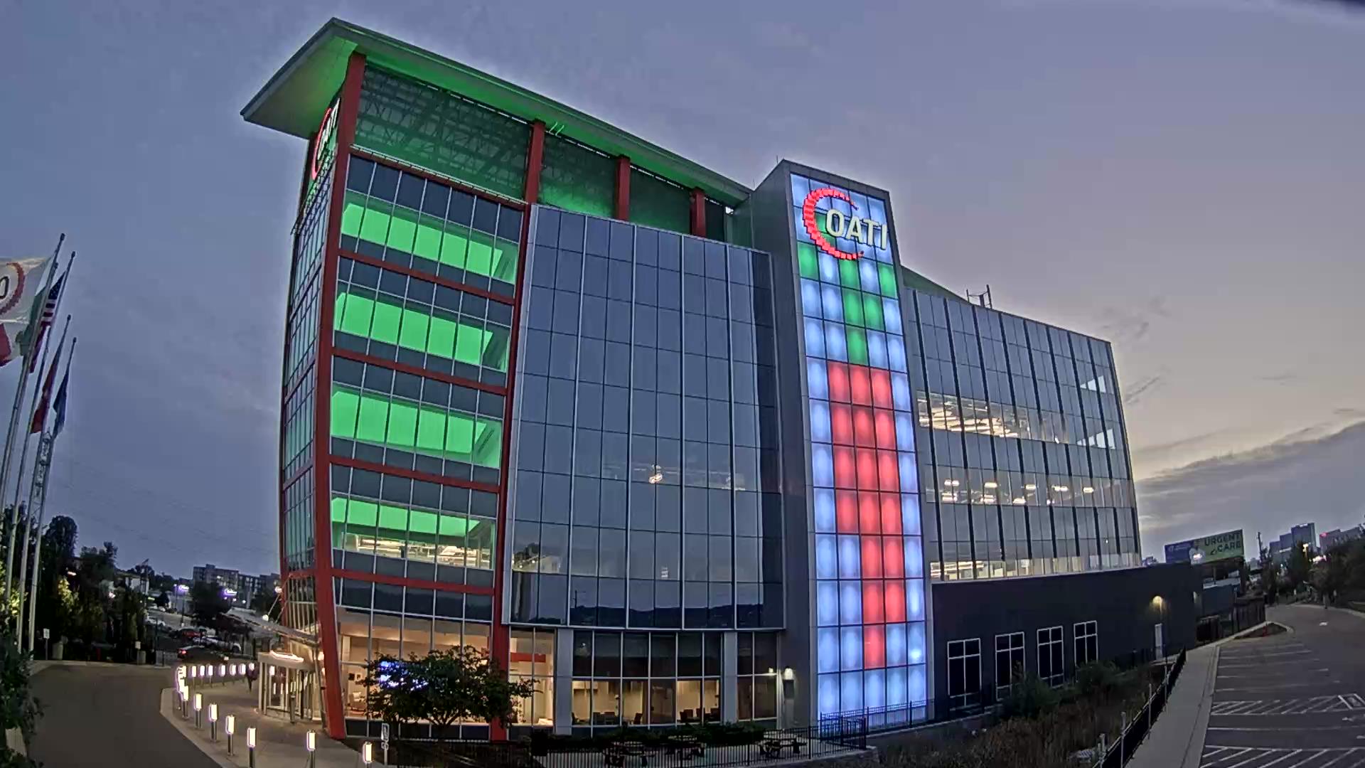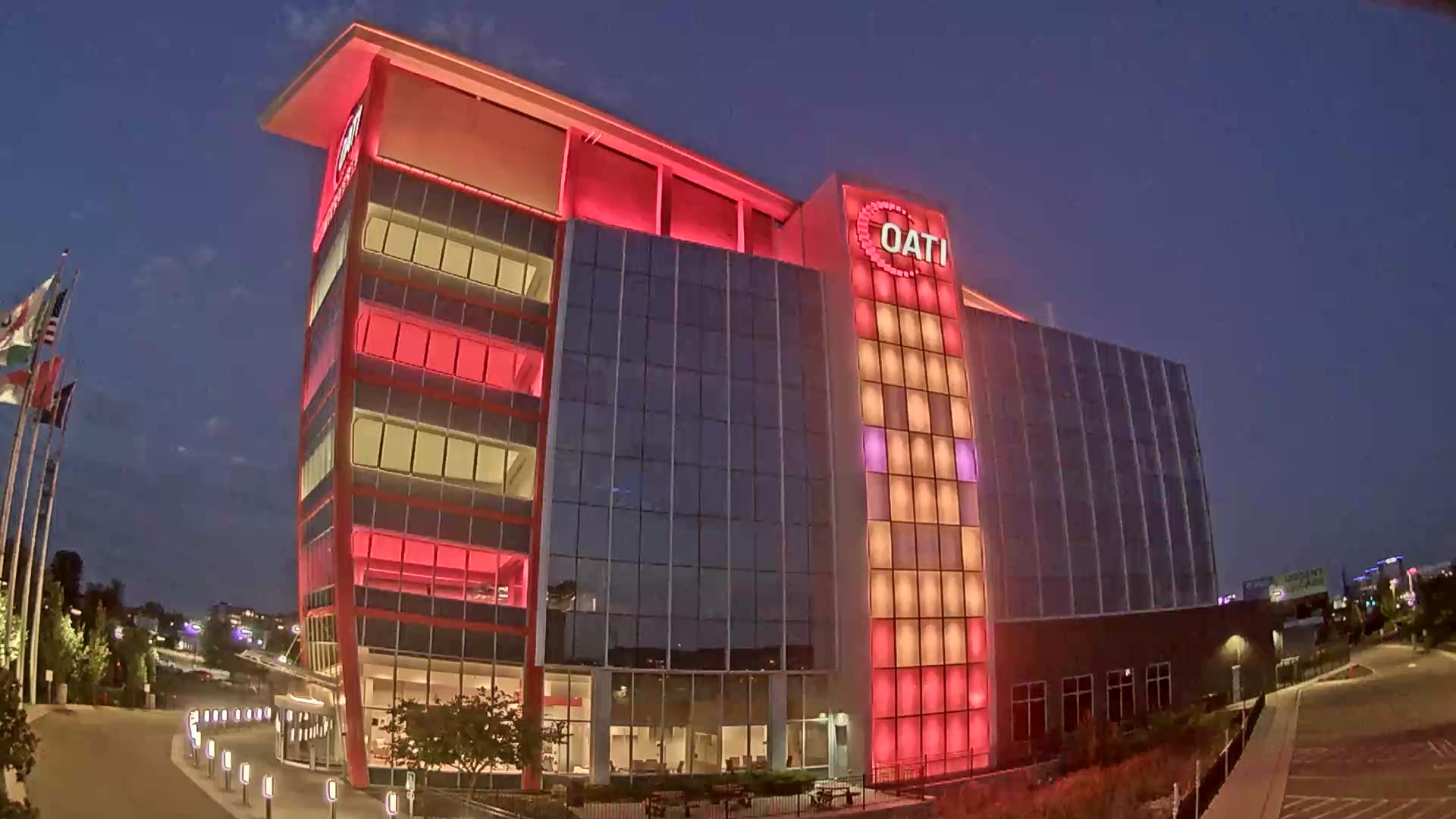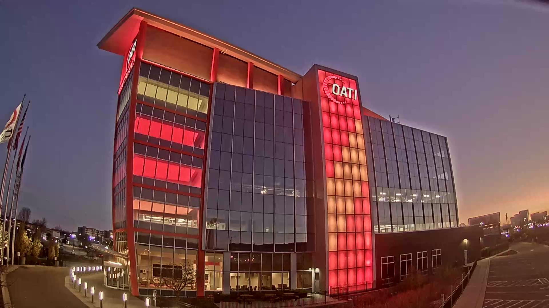 From the American flag to a glowing game of Tetris, the OATI Microgrid Technology Center illuminates a variety of unique light displays to about 172,000 commuters every day. Located in Bloomington, MN, this building is powered by several renewable energy resources, and consists of four office floors, a wraparound roof, and an over 100-foot-tall LED wall.